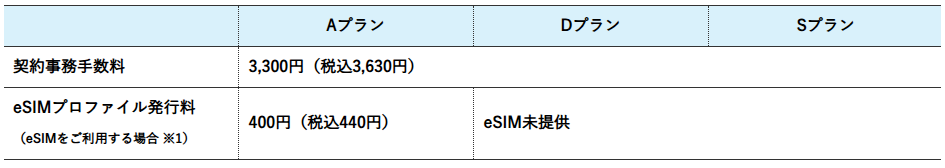 ○「データ通信(SMS機能付き)タイプ」は、月額プラス150円(税込165円)になります。