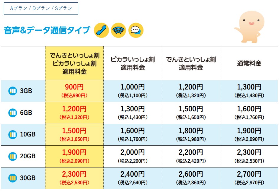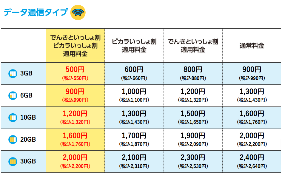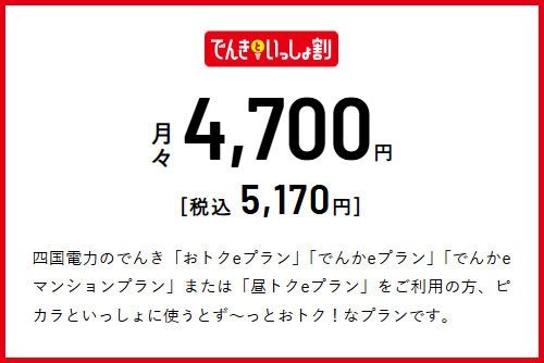 ピカラモバイルは、「四国電力の電気」と「ピカラ光ねっと」のセット割で、スマホ代が永年割引されます。
